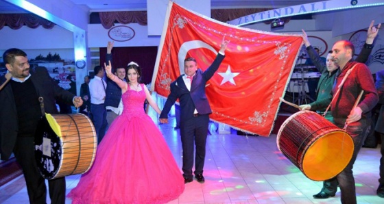 Fahrettin Işıktaş ile Merve Acun’un düğününde damat tarafının salona Türk bayrağı ile girmesi ise davetlilere büyük coşku yaşattı. Ardından ise şehitler için davetliler bir dakikalık saygı duruşunda bulundu. Havran Düğün Salonu’ndaki düğüne çok sayıda davetli katıldı. Davetliler, hep bir ağızdan ‘Şehitler ölmez, vatan bölünmez’ sloganıyla salonu inletti. Yüzükler takıldıktan sonra nişan folklor gösterisi ile devam etti.