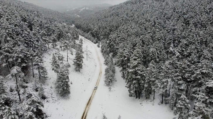Soğuk havanın etkili olduğu yaylalarda hafta sonundan itibaren aralıklarla etkili olan karın ardından, ağırlıklı çam ve ladin ağaçlarının yoğunlukta bulunduğu orman ve yaylalar dronla görüntülendi.