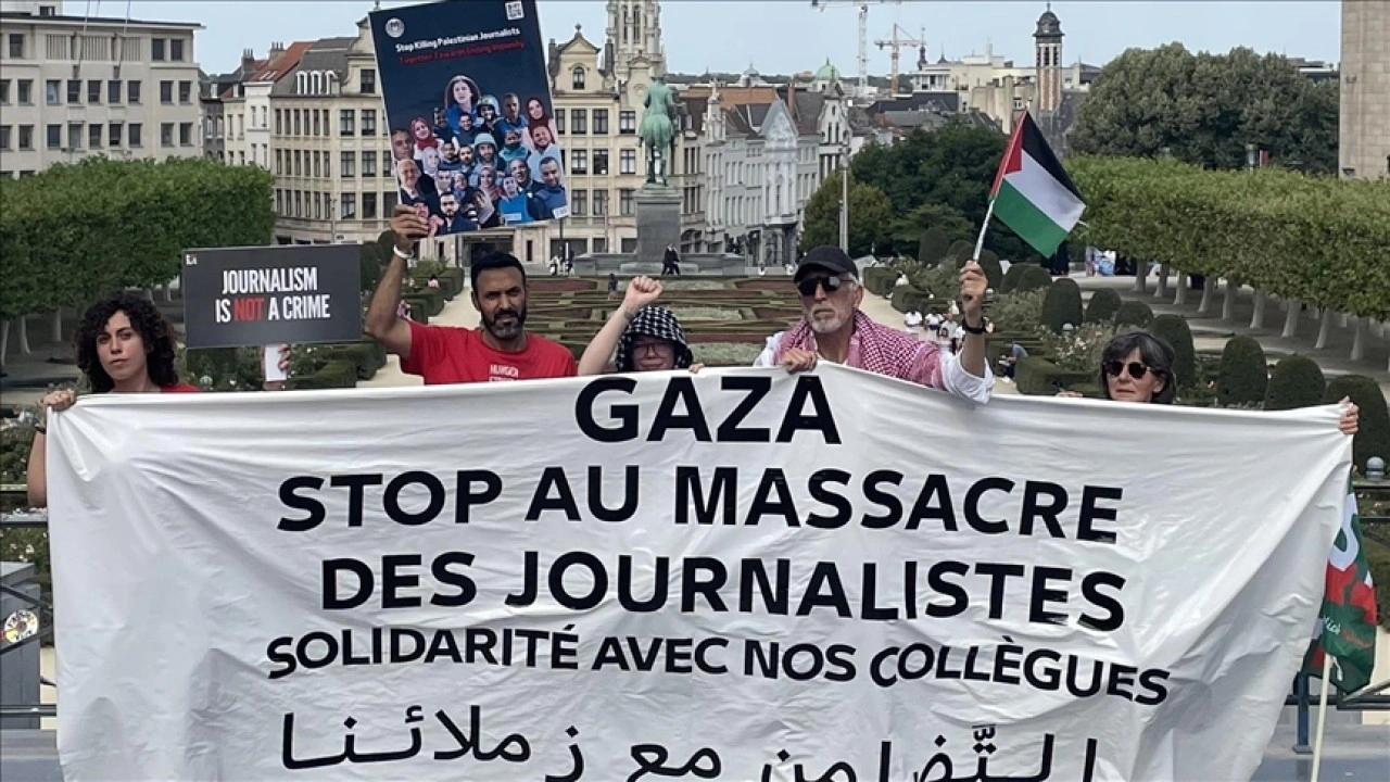 Kentin merkezindeki Mont Des Arts meydanında toplanan gazeteciler, İsrail'in Gazze'deki saldırılarında son günlerde çok sayıda gazetecinin hedef alınmasını protesto etti.