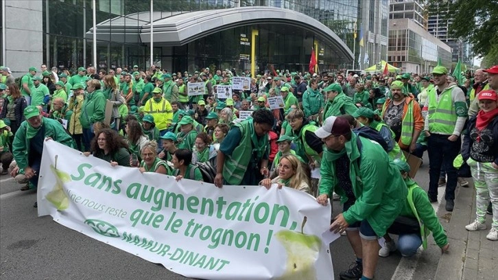 Belçika'daki en büyük işçi sendikalarının çağrısı üzerine protestocular Brüksel Kuzey Tren İstasyonu önünde buluştu.
