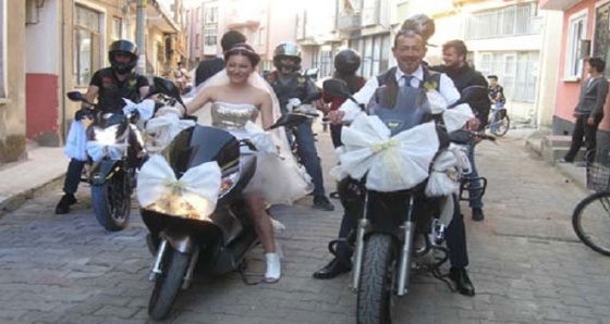 Balıkesir'in Gönen ilçesinde, Gönen Motor Kulübü Başkanı Gürcan Dağ ile kendisi gibi motosiklet tutkunu Kadriye Aslan, mutluluğa motosiklet üzerinde kucak açtı. Nikahtan önce motosikletlerini süsleten çift motosiklet tutkunu arkadaşlarıyla birlikte şehir turu attı. Motosikletli gelin ve damadı gören vatandaşlar hatıra fotoğrafı çektirmek için yarışa girdi. Gönen Motor Kulübü Başkanı Gürcan Dağ, "Herkes gelin arabası süsletir, biz gelin motosikleti süslettik. Bizim için hayatımız boyunca unutamayacağımız bir anı oldu" dedi.
