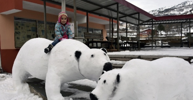 Kızları ile çalışmasını tamamlayarak kardan kutup ayısına son şeklini veren Oral’a yardımcı olan yeğeni 4 yaşındaki Zeynep Oral ise sempatik tavırlarıyla mikrofona kutup ayılarının nerede yaşadığını söylemesi renkli görüntülere sahne oldu.
