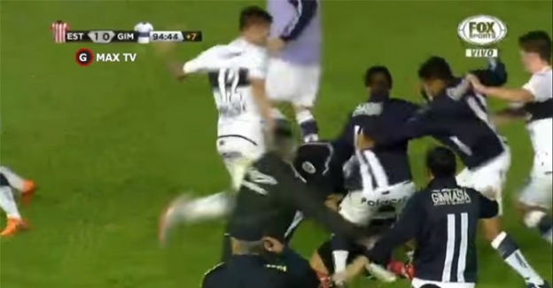 Arjantin’de Estudiantes ile Gimnasia La Plata arasında oynanan dostluk maçında karşılıklı sert faullerin ardından saha karıştı.