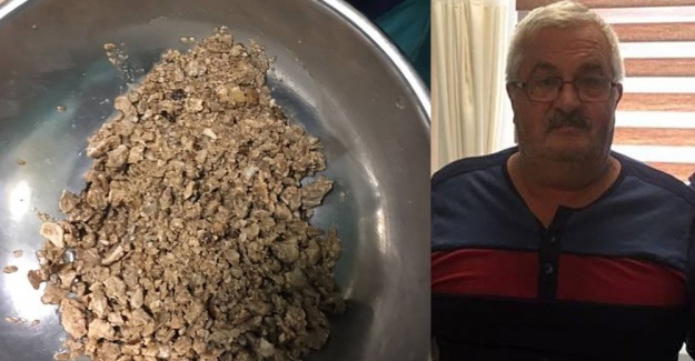 Haydar Eskicioğlu’nun ‘hafif sağ yan ağrı’ şikayeti ile hastanelerine başvurduğunu kaydeden Üroloji Uzmanı Op. Dr. Hüseyin Korucu, “Hastamız 15 yıl önce gittiği hastanede doktorlar kum döktüğünü söylemişler. Hastamız da o günden sonra herhangi bir şikayeti olmadığı içinde bir daha doktora gitmemiş. Hastamız bize başvurduğunda ilk olarak ultrasona aldık. Böbreğinde taşı görmemiz ile birlikte tomografisini çektik. Tomografi sonuçlarında sağ böbreği tamamına yakın dolduran 15 santimlik tıpta ‘geyik boynuzu’ diye adlandırılan ‘Kalsiyum oksalat monohidrat’ türündeki taş kitlesini gördük. Taş, böbreğin tüm boşluklarını kaplamış, hatta böbreği de genişletmişti” dedi.