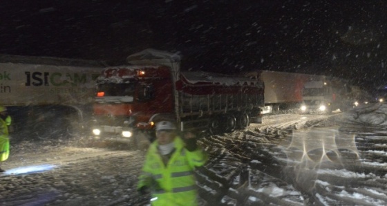 Öte yandan kayan Tırlar kaldırıldı.Bursa Ankara karayolunda trafik kontrollü verilirken, Tır ve otobüslerin geçişlerine izin verilmiyor.