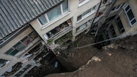 Heyelan nedeniyle binaların arka bahçelerindeki istinat duvarının çöktüğü, toprak yığınlarının ve beton parçalarının apartmanların 3. katına kadar girdiği görüldü.
