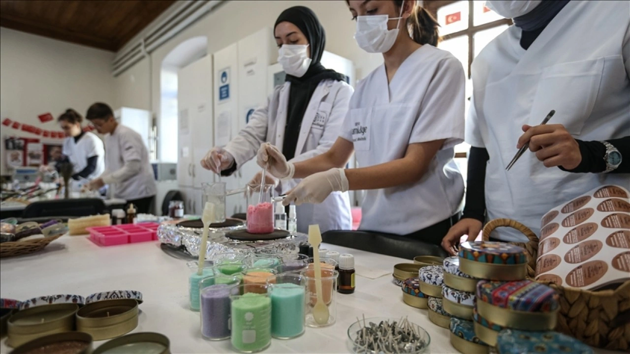 Alandaki yaklaşık 120 öğrenciyle AR-GE ve ÜR-GE çalışmaları yürüttüklerini söyleyen Laboratuvar Hizmetleri Alanı Şefi Fatmagül Kapaklı da yaptıkları analiz uygulamalarıyla bir çok doğal ürünü okulda imal ettiklerini vurguladı.