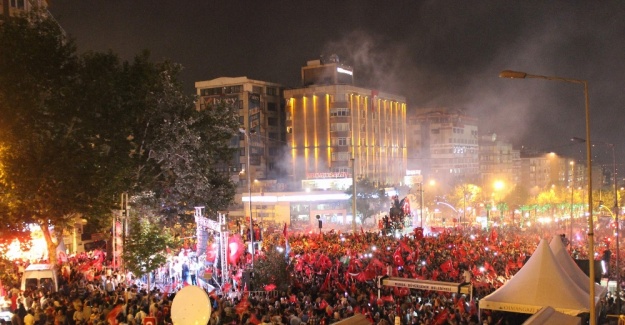 “İdam cezası geri gelsin”, “Dik dur eğilme, bu millet seninle”, “Devlete uzanan eller kırılsın” şeklinde sloganlar atan kalabalığın AK Parti önündeki kutlamaları devam ediyor. Fomara Meydanı trafiğe kapatılırken, polis geniş güvenlik tedbirleri aldı.