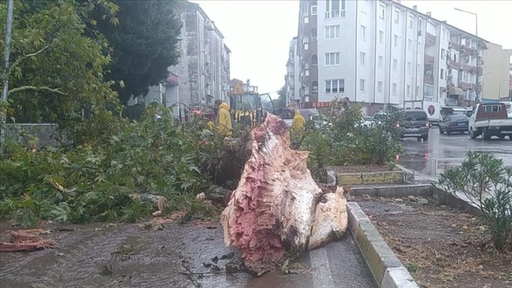 Yağış ve kuvvetli rüzgar nedeniyle bazı ağaçlar devrildi.