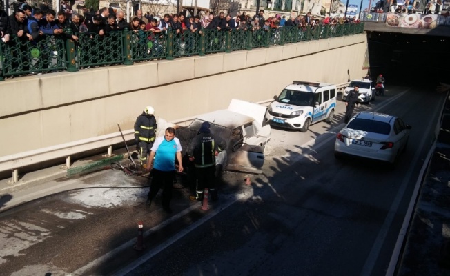 Olay merkez Yıldırım ilçesi Emirsultan Mahallesi’nde bulunan bir alt geçitte meydana geldi. Seyir halindeki bir otomobil aniden alev aldı. Aracının yandığını fark eden sürücü, araçtan yara almadan inmeyi başardı. Çevredeki sürücülerin fark etmesi üzerine polis ve itfaiye ekiplerine haber verildi. Olay yerine gelen itfaiye ekipleri araç yangınını kısa sürede kontrol altına alırken, polis ekipleri çevrede güvenlik önlemi aldı. Çevredeki vatandaşlar yaşananları meraklı gözlerle seyretti.