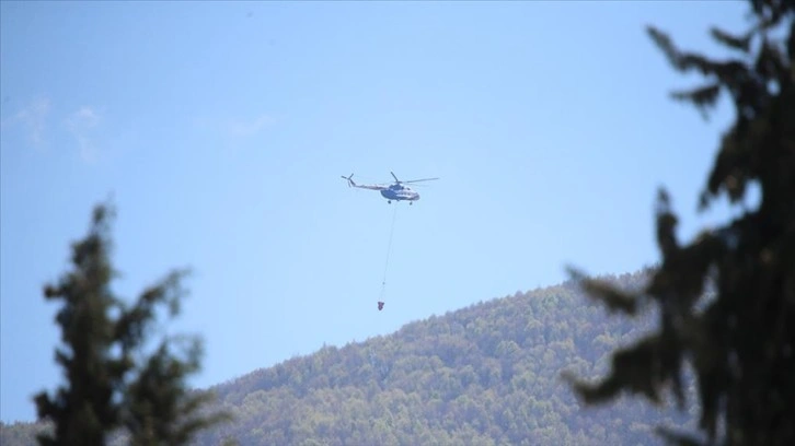Bursa İl Jandarma Komutanlığı helikopterinin desteğiyle kontrol altına alınan yangında soğutma çalışmaları sürüyor.