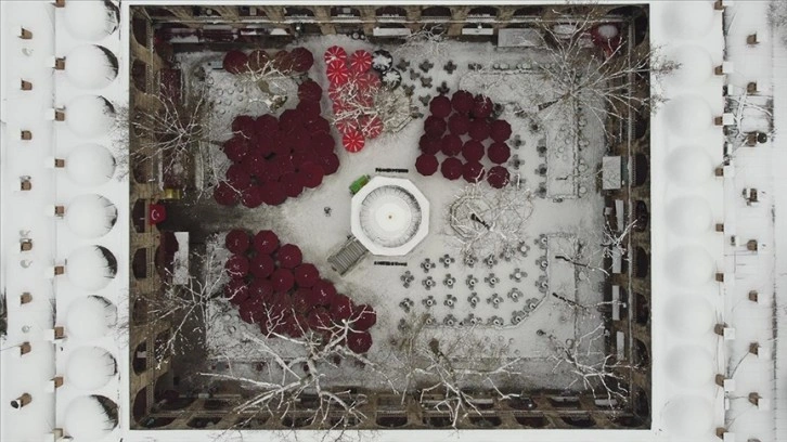 Sultan 2. Bayezid tarafından yaptırılan ve Osmanlı Devleti döneminde ipek ticaretinin merkezi olan Koza Han ve tarihi Ulu Cami'de kar sonrası manzara kaydedildi.