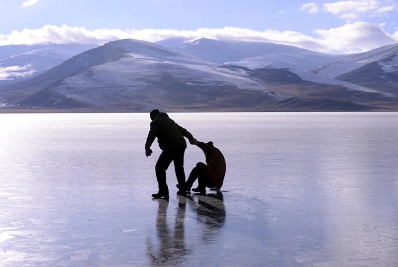 Giresun'dan gelen Sevgi Aydın da donmuş gölün üzerinde yürüme keyfi yaşadıklarını belirterek, "Enteresan, çok değişik. İyi ki gelmişiz, iyi ki buzun üstüne çıkmışız" dedi.