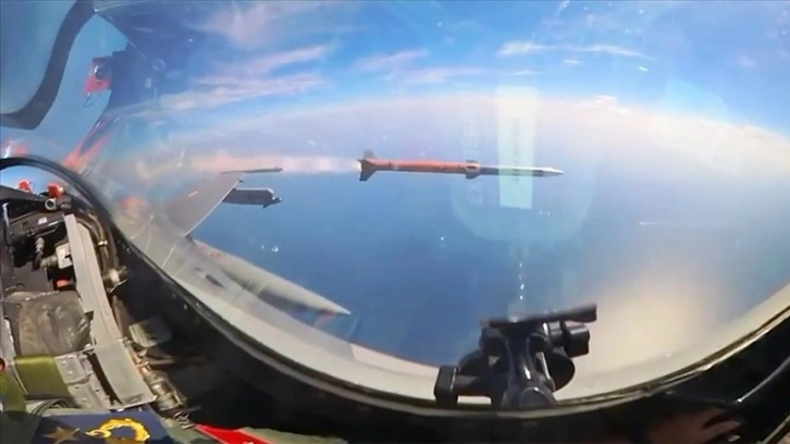 Sanayi ve Teknoloji Bakanı Mehmet Fatih Kacır, ilk yerli ve milli havadan havaya görüş ötesi füzesi Gökdoğan'ın havadaki hedef uçağı tam isabetle vurduğu anları paylaştı.