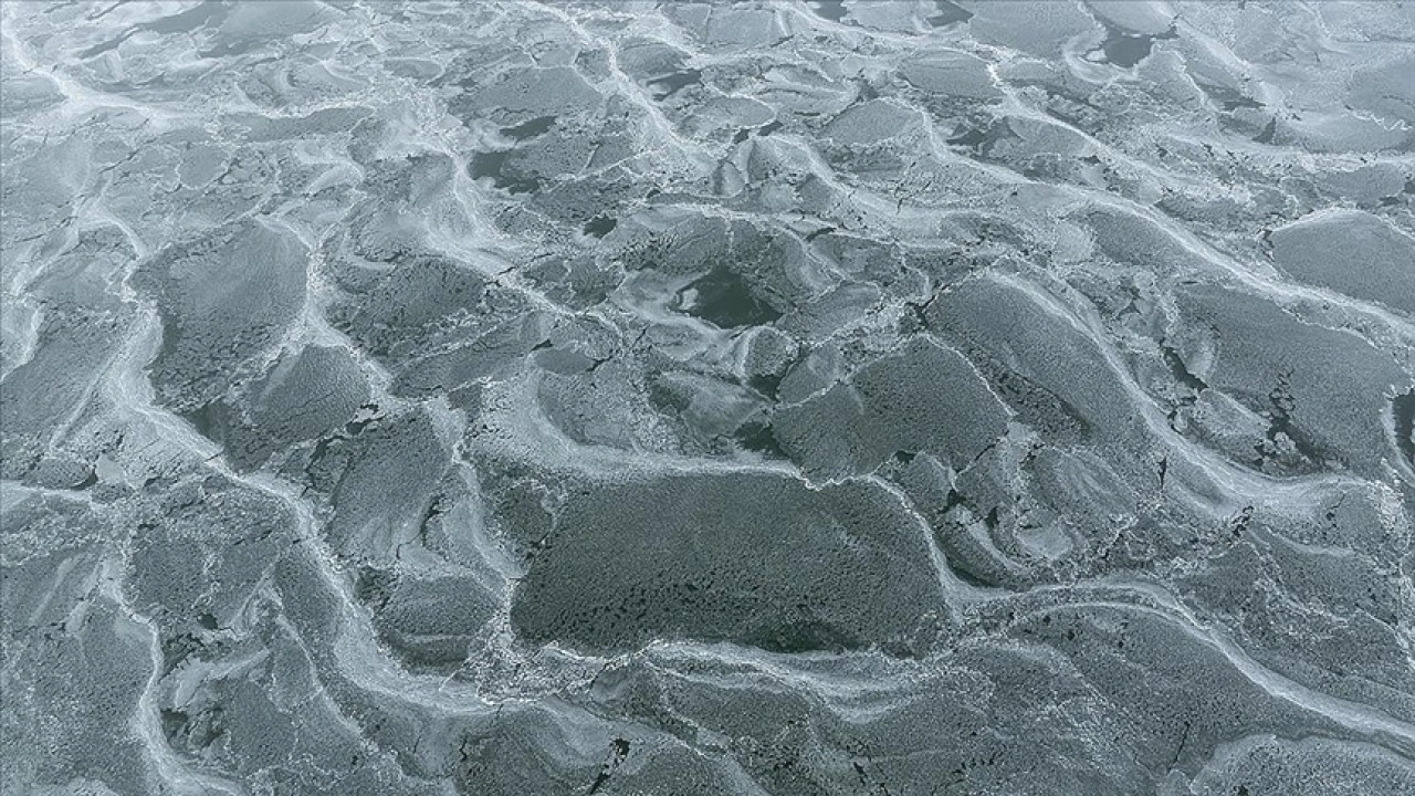 Doğu Anadolu Bölgesi'nde Van Gölü'nden sonra ikinci büyük göl olan Çıldır Gölü yüzeyinin bir bölümü, soğuk havanın etkisiyle dondu.