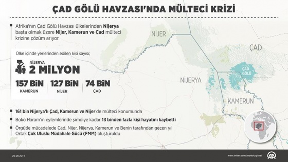Çad Gölü Havzası ndaki diğer ülkeler Kamerun, Nijer ve Çad da da durum Nijerya dan farklı değil. Boko Haram ve ordu arasındaki çatışmalar başta olmak üzere bölgedeki kuraklık, salgın hastalıklar, yoksulluk ve cinsel istismar gibi sorunlar sebebiyle Kamerun da 157 bin, Çad da 74 bin ve Nijer de 127 bin insan evlerinden uzakta yaşam mücadelesi veriyor.