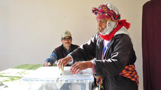 Yetkililerden oy pusulalarını alan vatandaşlar, okul bahçesine kurulan konteyner okuldaki iki sandıkta oy verdi.