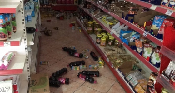 Çanakkale'nin Ayvacık ilçesine bağlı Gülpınar köyü açıklarında bu sabah 05.24'te meydana gelen 5.2 büyüklüğündeki sarsıntı, merkez üssü Gülpınar köyündeki bir marketin güvenlik kamerasınca kaydedildi. Kamera görüntülerinde, bir önceki gün meydana gelen deprem nedeniyle devrilen eşyaların üzerine diğer market ürünlerinin devrildiği görülüyor. Market sahiplerinin 2 gün art arda yaşanan deprem süresince ellemediği malzemeler, marketin içerisinde devrilmiş halde duruyor. Ayvacık yakınlarında 5.2 büyüklüğündeki depremin ardından artçı sarsıntılar sürüyor.