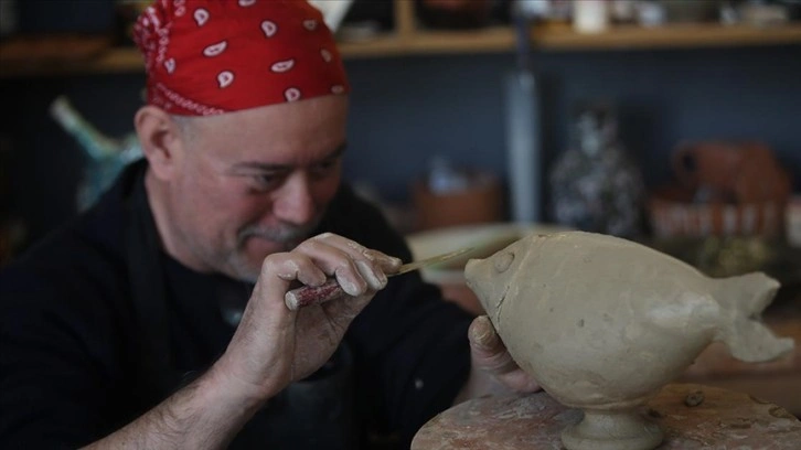 Geleneksel ürünlerde balık figürünün ön plana çıktığına değinen Arda, bunu yeniden hatırlatmak amacıyla seramik çamurunu yoğurup tasarımlarını yansıtmaya çalıştığını ifade etti.