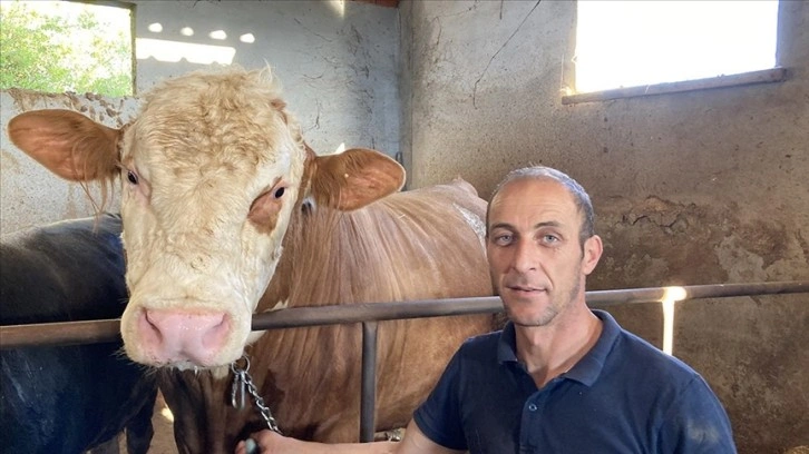 Büyükbaş hayvan yetiştiricisi Mustafa Uyanık, AA muhabirine, "Şampiyon" adını verdiği danayı 7 ay önce Erzurum'dan alıp beslediğini söyledi.