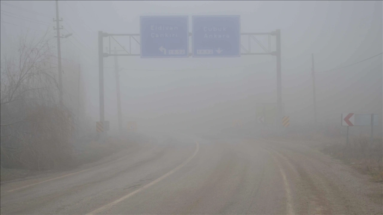 Çankırı-Ankara kara yolunda etkili olan yoğun sis, ulaşımı olumsuz etkiliyor