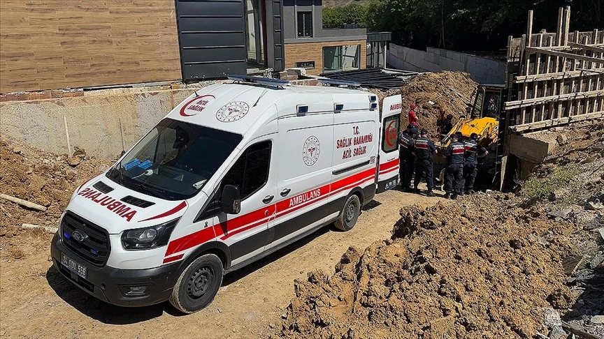Göçük altında kalan 2 işçiyi kurtarmak için olay yerine itfaiye, AFAD ve sağlık ekibi sevk edildi.