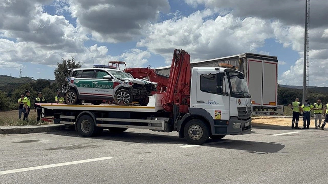 Tır ile jandarma aracı çekiciyle bulundukları yerden kaldırıldı.
