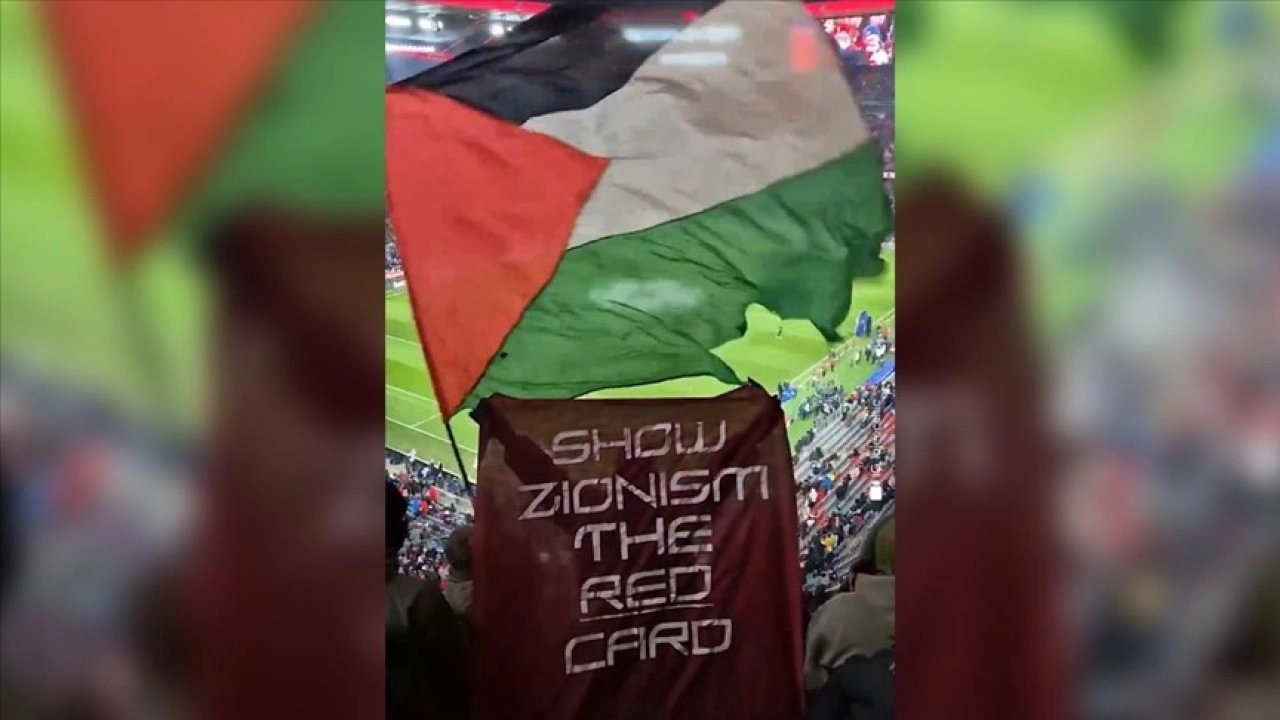 Tribünlerde yer alan bir pankartta, UEFA ve FIFA'ya 'İsrail'e kırmızı kart gösterilmesi' çağrısında bulunan "Show Zionism The Red Card" (Siyonizm'e kırmızı kart göster") ifadelerine yer verildi.