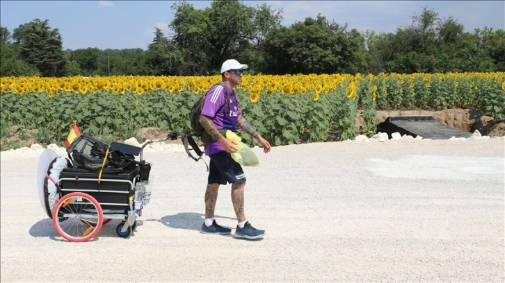 Real Madrid fanatiği çevreci gezgin, yürüyüşünde çöp toplayarak kirlenen dünyaya dikkati çekmeye çalıştığını anlattı.
