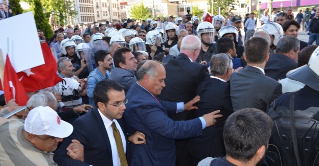CHP Genel Başkanı Kemal Kılıçdaroğlu’na yapılan saldırıyı protesto etmek için yürümek isteyen grup, Adalar mevkiinde toplandı. Yürüyüşe, milletvekilleri, Belediye Başkanları, Meclis Üyeleri katıldı. Yürüyüşe geçen grup, bir süre sonra polis ekipleri tarafından durduruldu. Yapılacak yürüyüşün güvenlik zafiyeti oluşturabileceği ihtimali gerekçesi ile polis ekipleri yürüyüş yapılmamasını söyledi. CHP Eskişehir İl Başkanı Sinan Özkar ile CHP Eskişehir milletvekili Cemal Okan Yüksel polis ekipleriyle görüştü. Yüksel, polis müdürüne "Biz şimdi istediğimiz yere yürüyeceğiz. Terörü lanetleyeceğiz, AK Partiyi lanetleyeceğiz, eğer halkın, devletin polisiyseniz yolu açacaksın, eğer AK Parti polisi isen kapat yolu hadi bakalım nasıl engel olacaksın bize" diyerek yürüyüşüne devam etti. Tekrar yürüyen gruba Çevik Kuvvet ekibi barikat kurdu. Milletvekili Cemal Okan Yüksel barikata yüklenince, arkadan gelen partililer de Okan’ı destekledi. Polis ekiplerinin barikatı açmasının ardından partililer Hamamyolu mevkiinde bulunan Saatli Park’a kadar yürüdü.