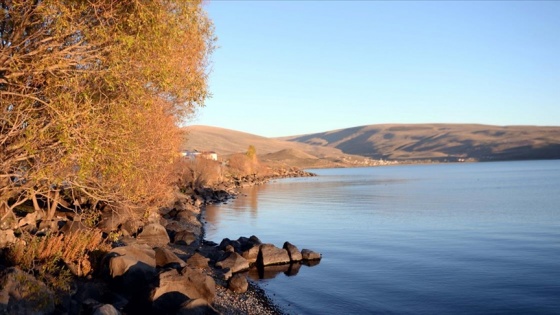 Son günlerde sonbahar renklerinin hakim olduğu Çıldır Gölü'nde, sararan ağaç ve yapraklar güzel manzaralar oluşturdu.