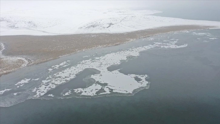 Kar yağışı ve soğuk havanın etkisiyle Kars-Ardahan sınırı arasında yer alan ve Doğu Anadolu Bölgesi'nde Van Gölü'nden sonra ikinci büyük göl olan Çıldır Gölü'nün kenar kısımları dondu.