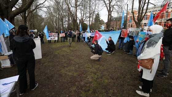 Yaklaşık 100 kişi "Uygurlara özgürlük", "Soykırımı durdurun" ve "Toplama kamplarını kapatın" sloganı attı.