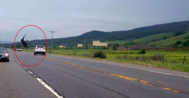 İzleyenlerin yüreklerini ağızlara getiren görüntüde, Amerikan geyiği hızla gelen aracın çarpmasının etkisiyle metrelerce havaya uçtu. Kısa bir süre sonra kalkmayı başaran geyik, hiçbir şey olmamış gibi yoluna devam etti. Kaza nedeniyle maddi hasarın meydana geldiği araç içinde bulunan yolcular ise olayı hafif yaralı olarak atlattı.