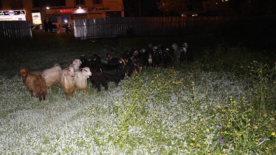 Mahallede araştırma yapan devriye ekipleri, keçi ve koyunlardan oluşan sürüyü buldu.
