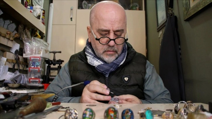 Kolye ucu ve yüzük taşı gibi takılar işlediğini anlatan Küçükdemirel, tamamlanan taşa yukarıdan bakıldığında işlemin görüldüğünü dile getirdi.