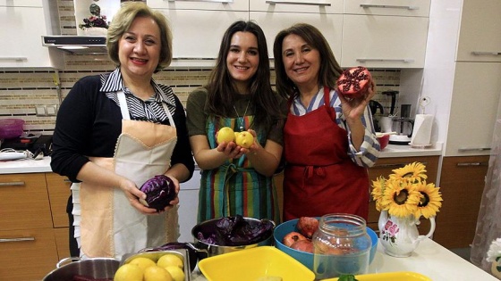 "Eskiden Anadolu'da iplikler, yünler ve halılar sebze ve meyvelerden elde edilen renklerle boyanırmış. Sadece mahsullerden değil böceklerden, taştan ve minerallerden de yardım alınarak renkler ortaya çıkarılırdı fakat biz çocuklarla birlikte etkinlik yaptığımız için sadece mahsul ürünlerden boya üretiyoruz. Çocukların hem dokunabilecekleri hem de tadabilecekleri organik ürün yapıyoruz. Meyve ve sebzeleri önce iyice yıkıyor ve temizliyoruz. Sonra ince ince kesip tencerede suyun içinde haşlıyoruz çünkü çocuklar ellerine bulaştırdıkları boyaları tatmak istiyor. Yani dokuların, kokuların ve tatların karışımı olduğu için çocukların farklı duyularını zenginleştiriyoruz."