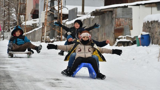 Yerli ve yabancı turistlerin Cıbıltepe Kayak Merkezi'nde yoğunluk oluşturduğu Kars'ın Sarıkamış ilçesinde, çocuklar ise mahalle sokaklarında kızak kaydı.