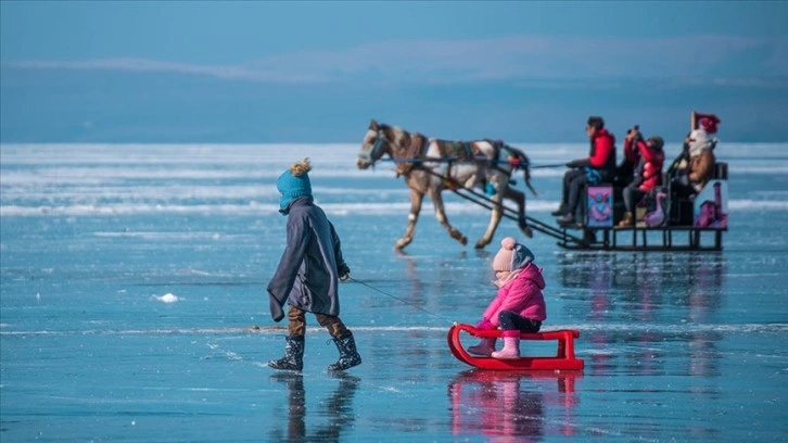 Ziyaretçiler, buz kalınlığının yaklaşık 27 santimetreye ulaştığı gölün simgesi haline gelen atlı kızaklara binerek gezinti yapıyor. Bazı çocuklar buz üzerinde, bazıları ise yanlarında getirdikleri kızaklarla kayarak tatilin keyfini çıkarıyor.