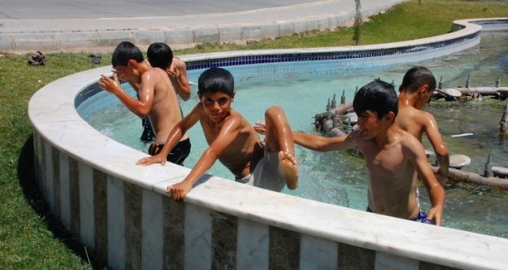 Hava sıcaklığının 40 derecenin üzerinde olduğu Adıyaman’da vatandaşlar sıcaklardan bunalıyor. Vatandaşlar serin yerleri tercih ediyor. Çocuklar ise serinlemek için şehir merkezindeki süs havuzlarında serinliyor. Tehlikeye aldırış etmeyen çocuklar, elektrik akımının geçtiği süs havuzlarında serinliyor. Trafik yoğunluğunun fazla olduğu Atatürk Bulvarı üzerindeki süs havuzunda serinleyen çocuklar elektrik tehlikesinin yanında kaza tehlikesini de hiçe sayıyor.