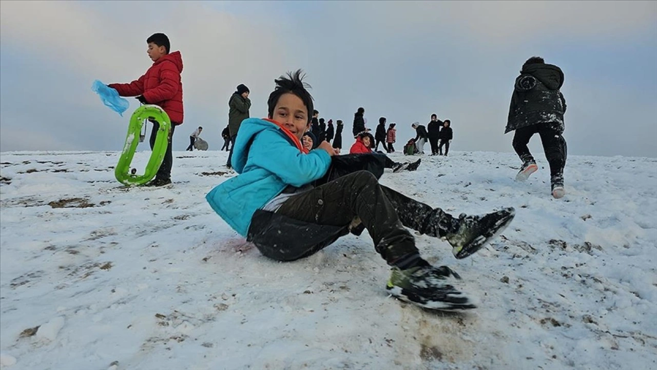 Hafta sonu yağan kar sonrası çocuklar kızak, plastik bidon, sini ve tepsilerle Kale Mahallesi Ekin Caddesi’nde bulunan tepede toplandı.X
