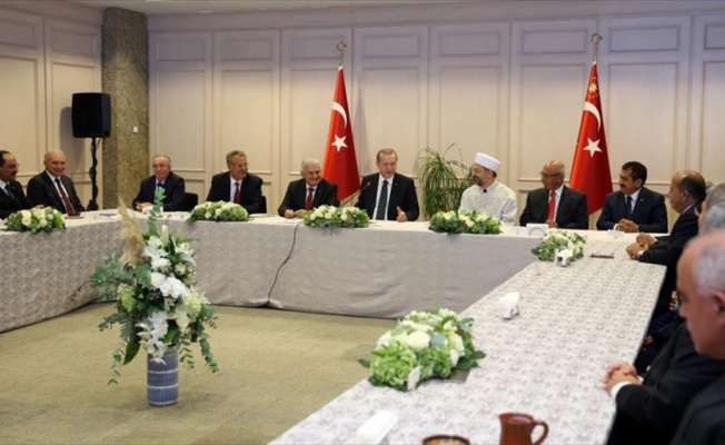 İSTANBUL (AA) - Cumhurbaşkanı Recep Tayyip Erdoğan, 10 Muharrem İftarı'na katıldı.Haliç Kongre Merkezinde basına kapalı gerçekleşen iftarda, Başbakan Binali Yıldırım ve Diyanet İşleri Başkanı Prof. Dr. Ali Erbaş da yer aldı.