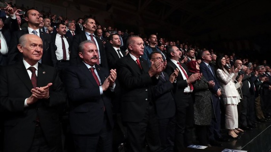 Burada "1919 Bitmeyen Yolculuk" drama sahne gösterimini izleyen Erdoğan, oyuncular ve programda emeği geçenleri, selamlama sırasında beraberindekilerle ayakta alkışladı.