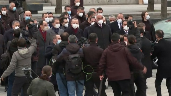 Cumhurbaşkanı Erdoğan, inşası süren Atatürk Kültür Merkezi'ndeki (AKM) incelemelerinin ardından Taksim Meydanı'ndan yürüyerek cami inşaatına geçti.