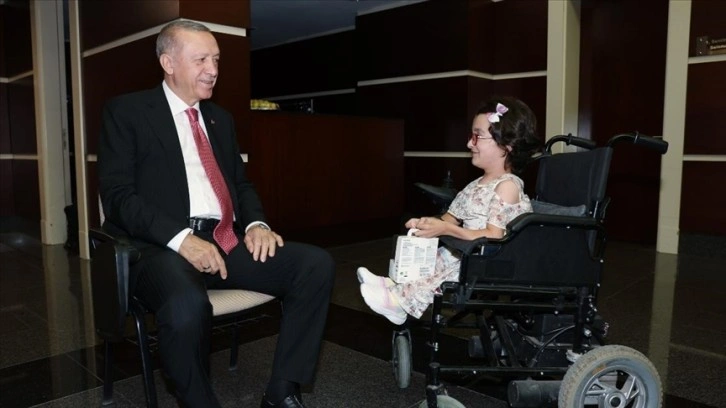 Erdoğan, AK Parti Genel Merkezi'ndeki kabulde Hira ile sohbet etti.
