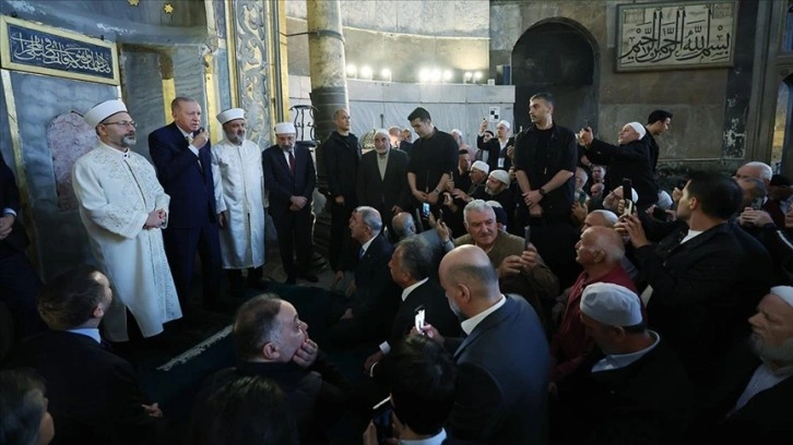 Cumhurbaşkanı Erdoğan, öğle saatlerinde Üsküdar Kısıklı'daki konutundan çıkarak Ayasofya-i Kebir Cami-i Şerifi'ne geldi. Cuma namazını burada kılan Erdoğan, çıkışta vatandaşlarla sohbet etti.