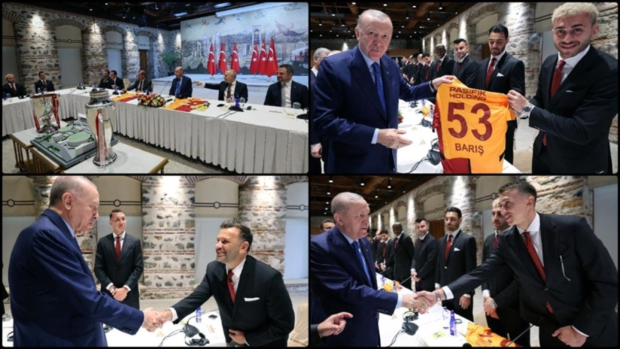 Cumhurbaşkanı Erdoğan, Trendyol Süper Lig'de 2024-2025 sezonu şampiyonu Galatasaray'ın heyetini Cumhurbaşkanlığı Dolmabahçe Çalışma Ofisi'nde kabul etti.