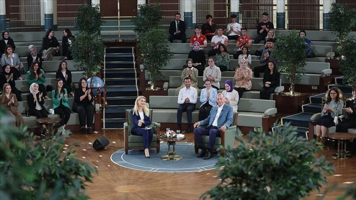 Erdoğan, "Meydanların dili neyse o bizim için çok önemli. Burada da gençlerle, öğrencilerimizle Cumhurbaşkanlığı Külliyesi Millet Kütüphanesi'nde sizlerle beraber olmak bizleri ayrıca mutlu ediyor." dedi.