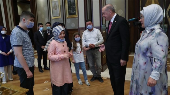 Cumhurbaşkanı Recep Tayyip Erdoğan, Kur'an-ı Kerim'i 12 ayda ezberleyerek hafız olan görme engelli imam hatip ortaokulu 6'ncı sınıf öğrencisi Ravzanur Koçaker ve ailesini kabul etti.