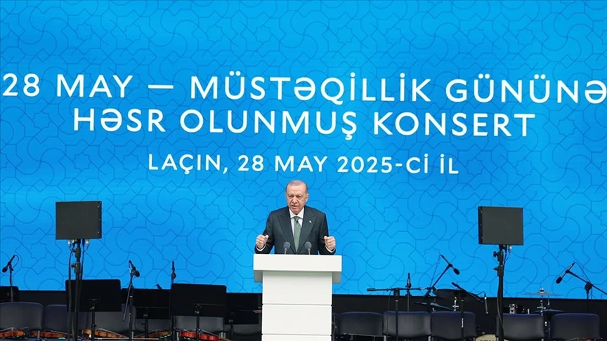 Azerbaycan'ın 28 Mayıs Müstakillik Günü dolayısıyla ortak kültür ve kardeşliğin vurgulandığı buluşmada yer almaktan duyduğu memnuniyeti dile getiren Erdoğan, "Bağımsızlığın nasıl kazanıldığını, ne kadar değerli olduğunu çok iyi bilen bir milletin evladı olarak bağımsızlık gününüzü can-ı gönülden tebrik ediyorum. İstiklal ve istikbal yolunda verdiğimiz şanlı mücadeleleri şehadetleriyle taçlandırılan kahramanlarımızı rahmet ve saygıyla yad ediyorum. Rabb'im aziz şehitlerimizin ruhlarını şad, mekanlarını cennet eylesin." diye konuştu.